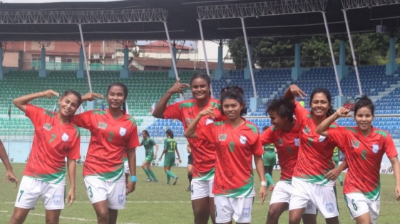 পাকিস্তানকে ৬-০ গোলে হারিয়ে সাফ নারী চ্যাম্পিয়নশিপের সেমিফাইনাল অনেকটাই নিশ্চিত করে রেখেছিল বাংলাদেশ। আজ (শনিবার) ‘এ’ গ্রুপে দিনের অন্য ম্যাচে ভারত ৯-০ গোলে মালদ্বীপকে উড়িয়ে শেষ চার নিশ্চিত করেছে, একই সঙ্গে এই গ্রুপ থেকে বাংলাদেশও পৌঁছে গেছে সেমিফাইনালে।